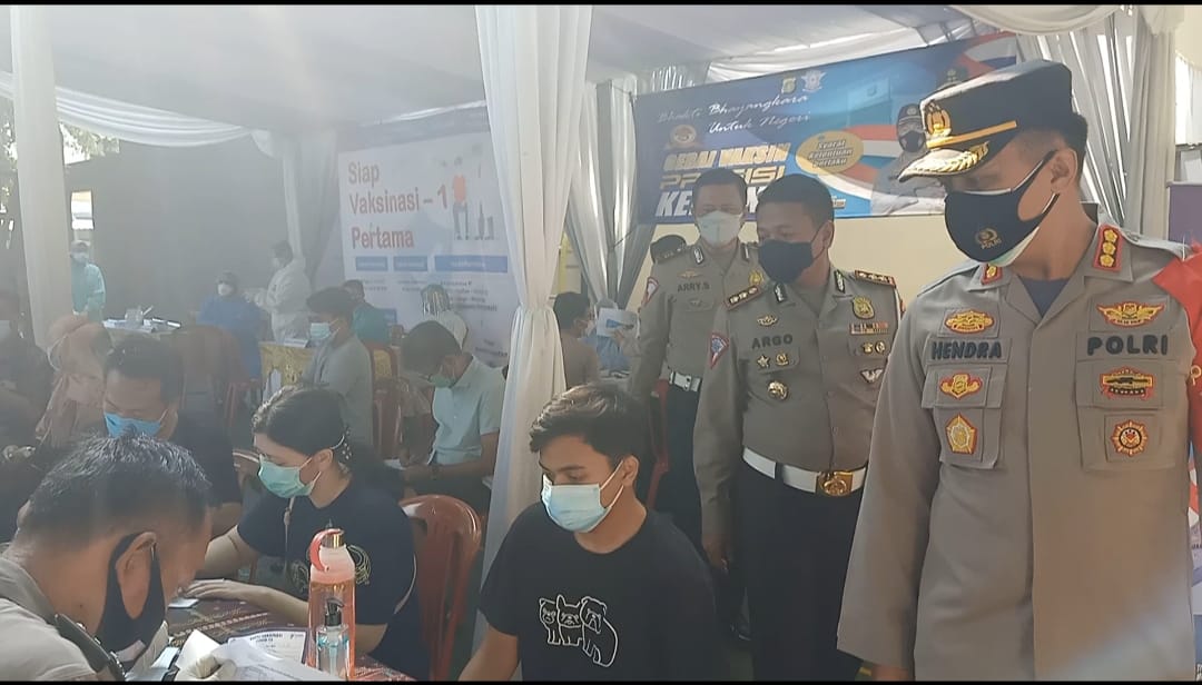 Bertempat di ruangan terbuka yang berada di RW 10 desa lambang jaya kecamatan tambun selatan kabupaten Bekasi Jawa barat(Minggu pagi/04/07), petugas kepolisian polres metro Bekasi di bantu petugas relawan dan tenaga medis, menggelar gerai pelayanan vaksinasi kepada warga di tempat tersebut yang di ketahui masuk dalam zona merah wabah covid 19.