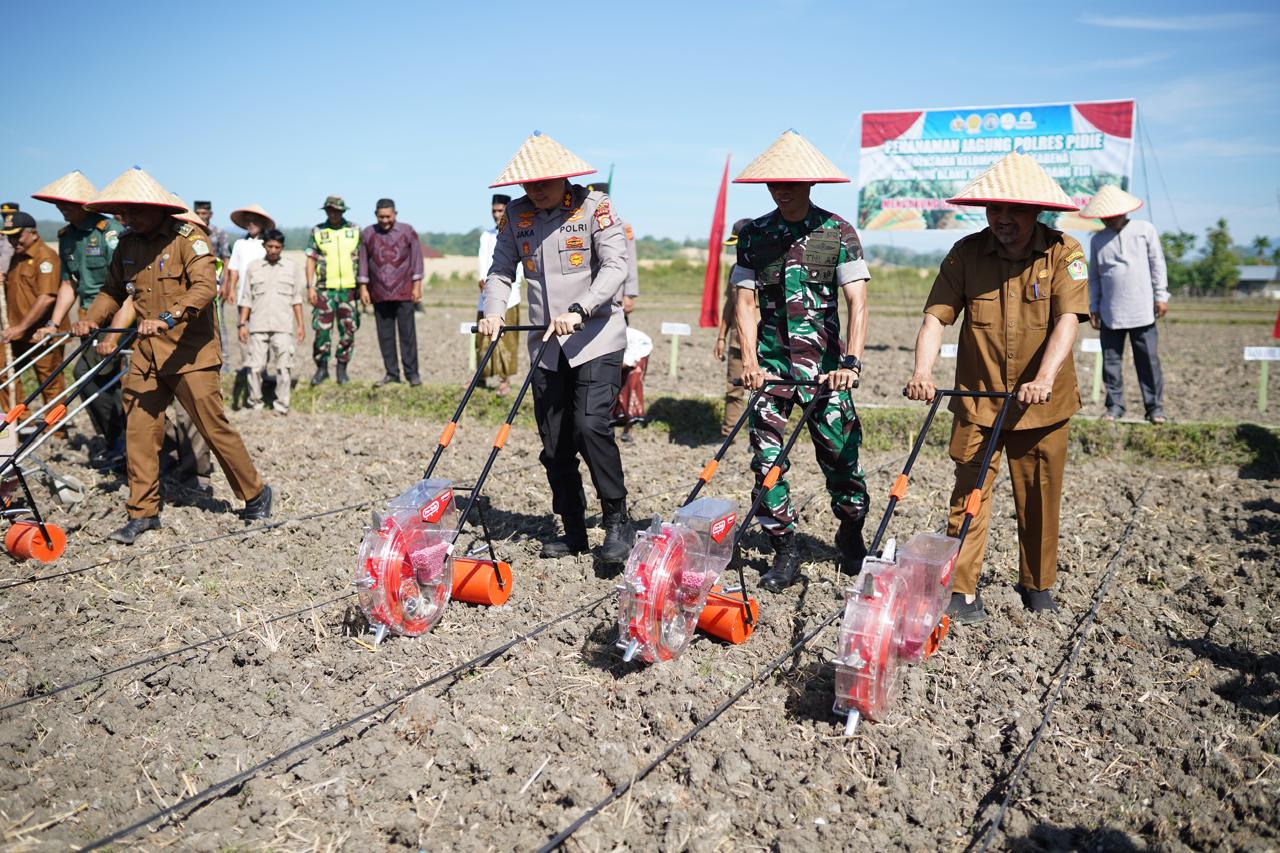 “Kegiatan ini tidak hanya sebatas penanaman, tetapi merupakan bentuk nyata dukungan terhadap ketahanan pangan nasional”, ungkap Kapolres Pidie