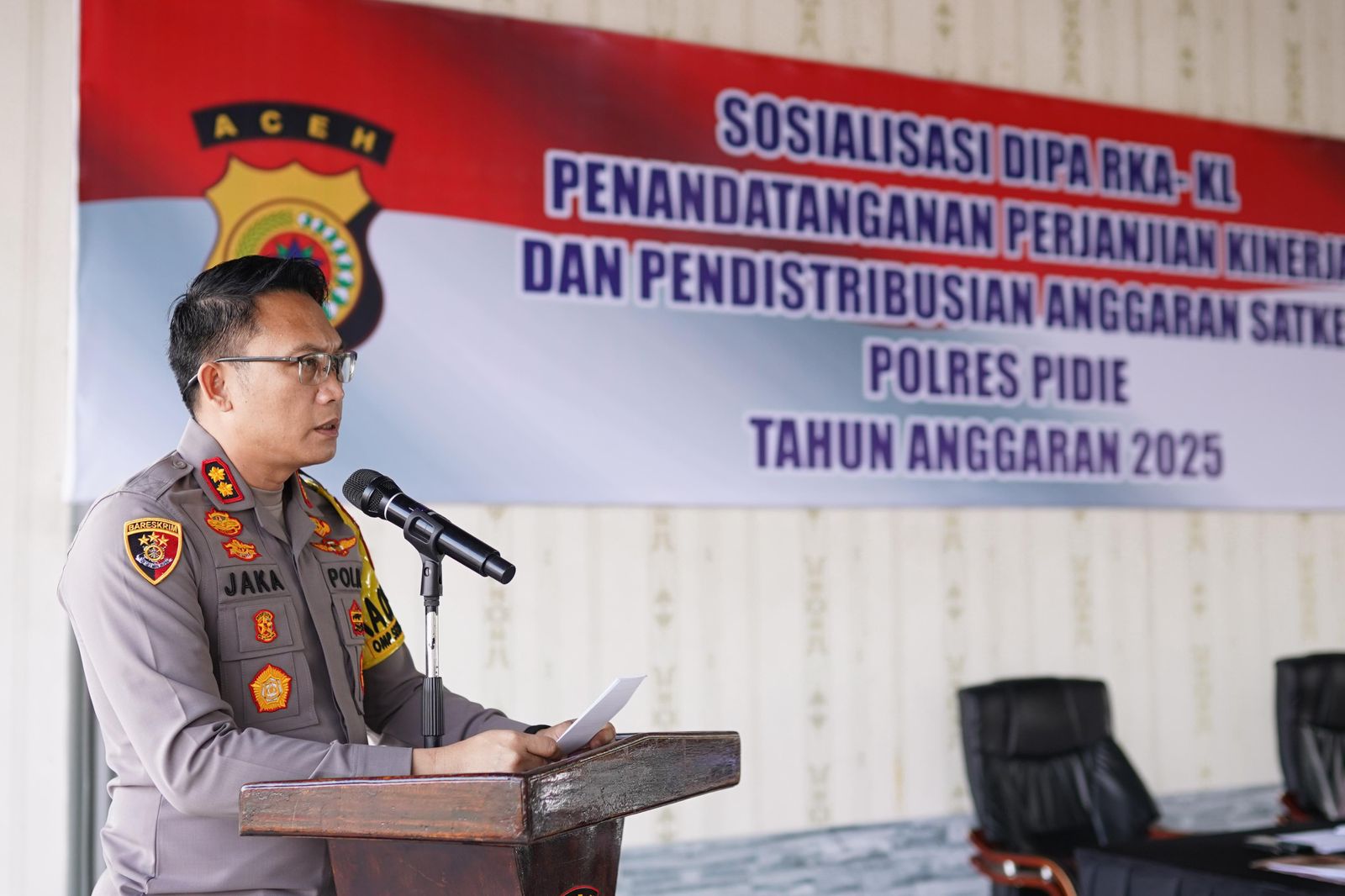 Dalam sambutannya Kapolres Pidie AKBP Jaka Mulyana, SIK, MIK menekankan bahwa pentingnya pemahaman mendalam mengenai DIPA dan RKA-KL sebagai landasan pelaksanaan tugas kepolisian di tahun 2025.