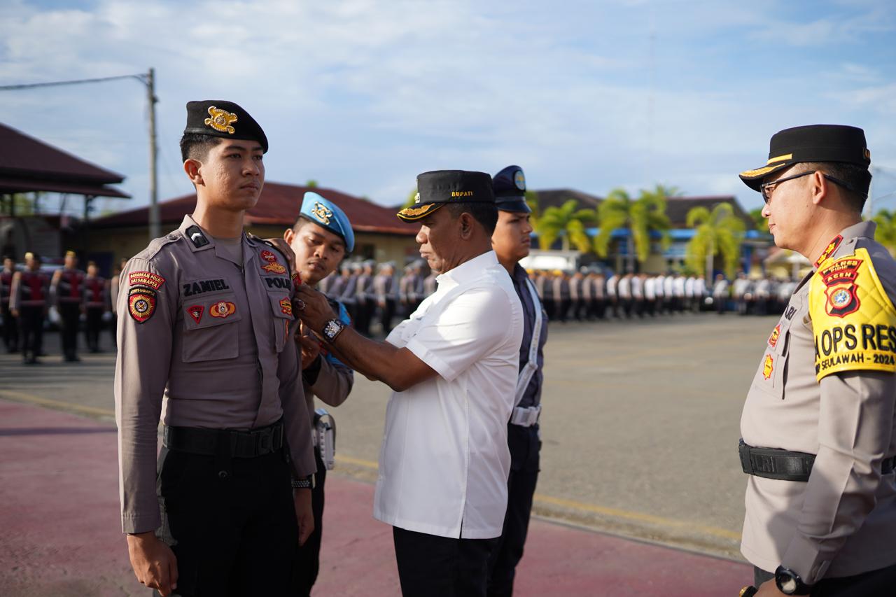 Pj. Bupati Pidie Drs. Samsul Azhar bersama Kapolres Pidie AKBP Jaka Mulyana, SIK, MIK bertindak selaku inspektur apel dalam rangka apel gelar pasukan Ops Lilin Seulawah 2024.