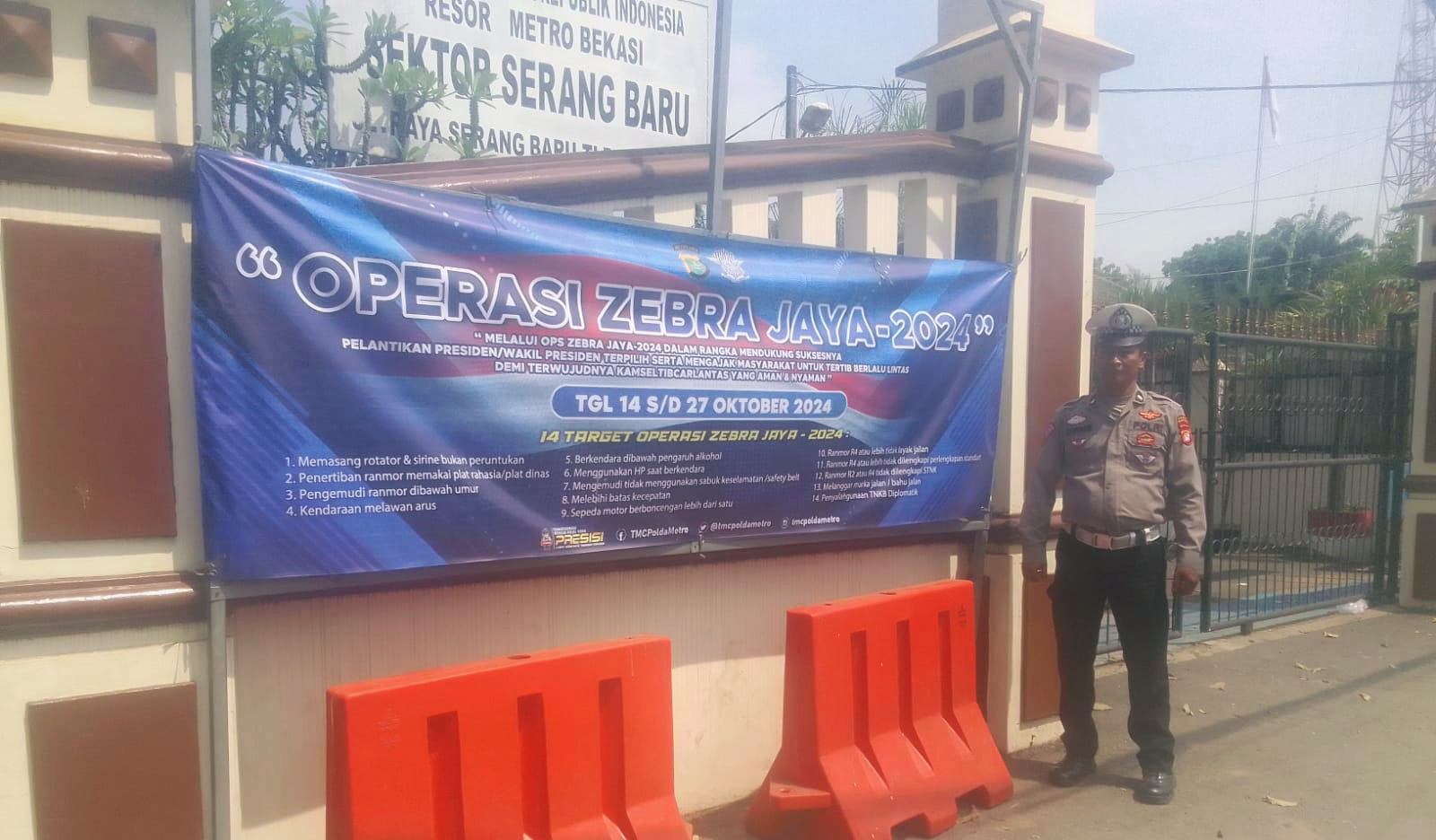MEDIABERITAPANTAU, KAB. BEKASI ~ Dalam upaya meningkatkan kesadaran masyarakat terhadap pentingnya ketertiban berlalu lintas, Polsek Serang Baru Polres Metro Bekasi telah memasang spanduk sebagai bentuk sosialisasi terkait pelaksanaan Operasi Zebra Jaya 2024, bertempat di Mako Polsek Serang Baru, Rabu (16/10/2024).