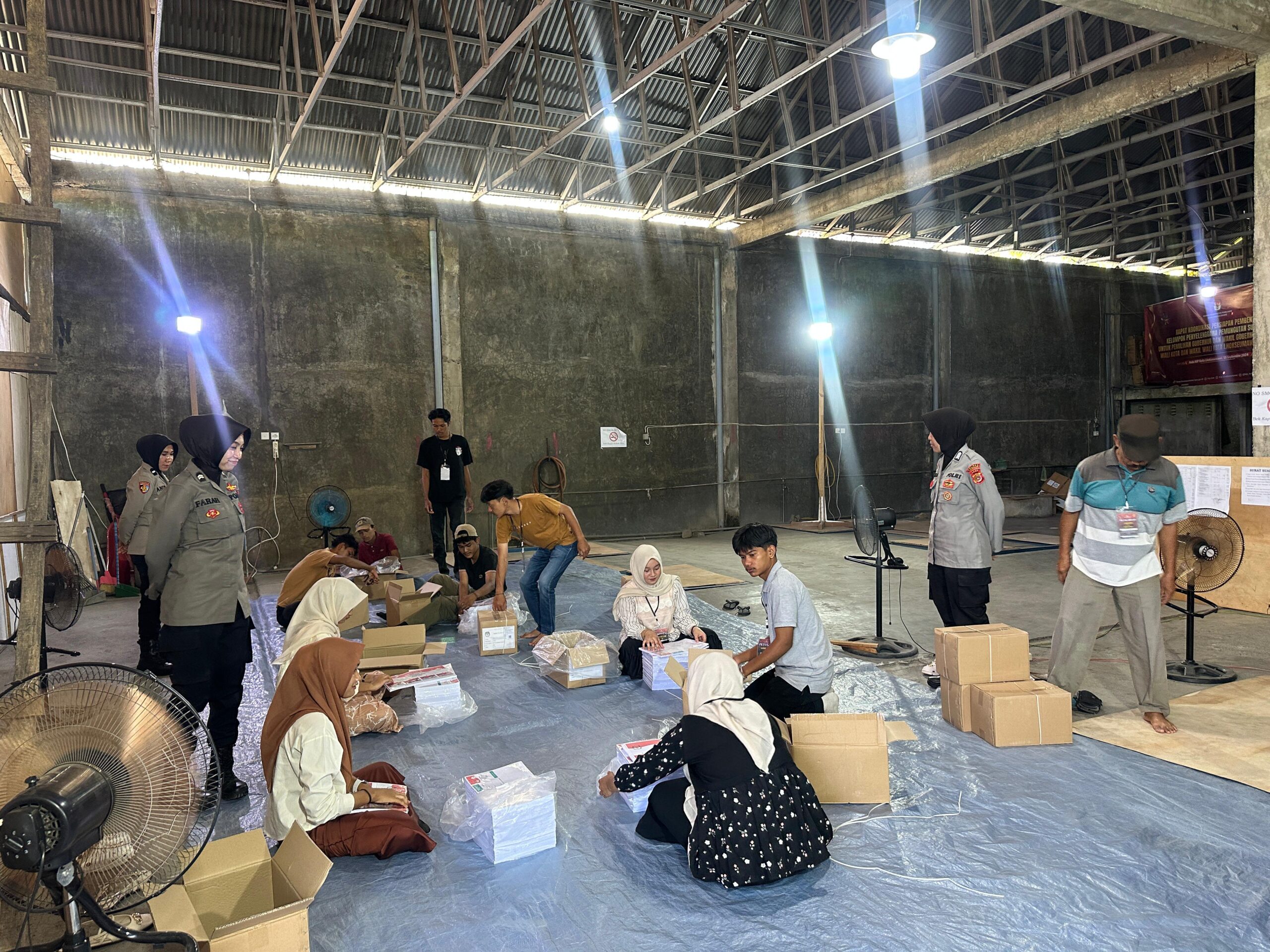 Polwan Kawal Ketat Penyortiran dan Pelipatan Surat Suara di Gudang Logistik KIP Lhokseumawe