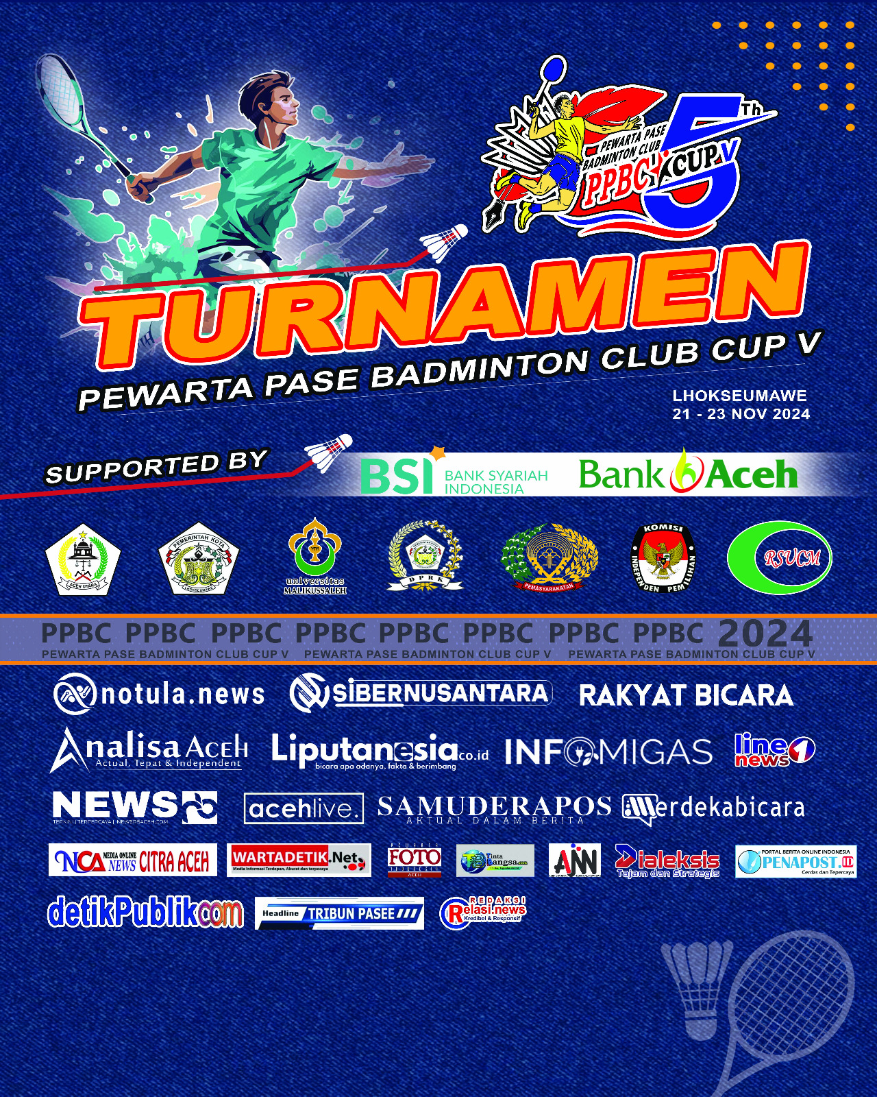 Plt Ketua Umum Persatuan Pewarta Badminton Club (PPBC), Hidayat menyebutkan, event tersebut dilaksanakan pada 21 hingga 23 November 2024, yang diikuti oleh 18 tim tunggal dari 18 SMP se-Kota Lhokseumawe.