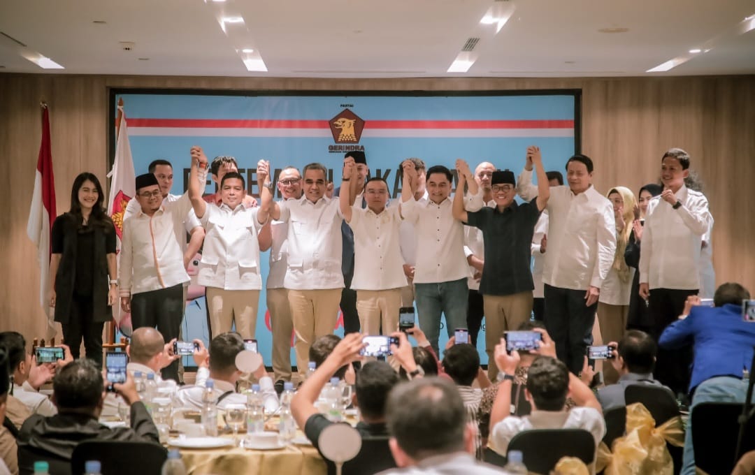 “Ditandatangani Ketum Prabowo dan Sekjen Muzani. Untuk Banten maju menang,” kata Ketua Harian Partai Gerindra Sufmi Dasco Ahmad dalam sambutannya.