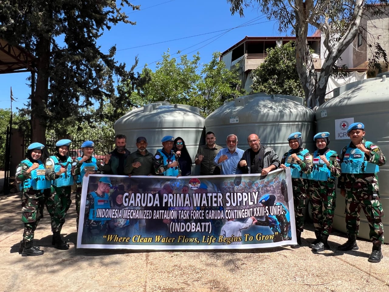 Sementara dalam waktu bersamaan Dansatgas menyampaikan “Program ini sengaja kami inisiasi karena melihat kesulitan masyarakat sekeliling pasca konflik terutama prioritas adalah desa Adchit Al Qusair dimana UNP kami berada, kami berharap Donasi air yang akan dilaksanakan secara rutin ini bisa sangat bermanfaat bagi masyarakat dalam menata kembali kehidupan mereka, Program ini juga linier dengan arahan dan Program Bapak Presiden RI, Bapak Panglima TNI maupun bapak Kasad.