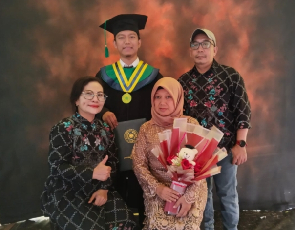 Dengan penuh kegembiraan dan terharu melihat anak yang telah lulus kuliah ambil jurusan Fakultas Teknik Sipil yang bernama Muhammad Rafi Thoriqi .