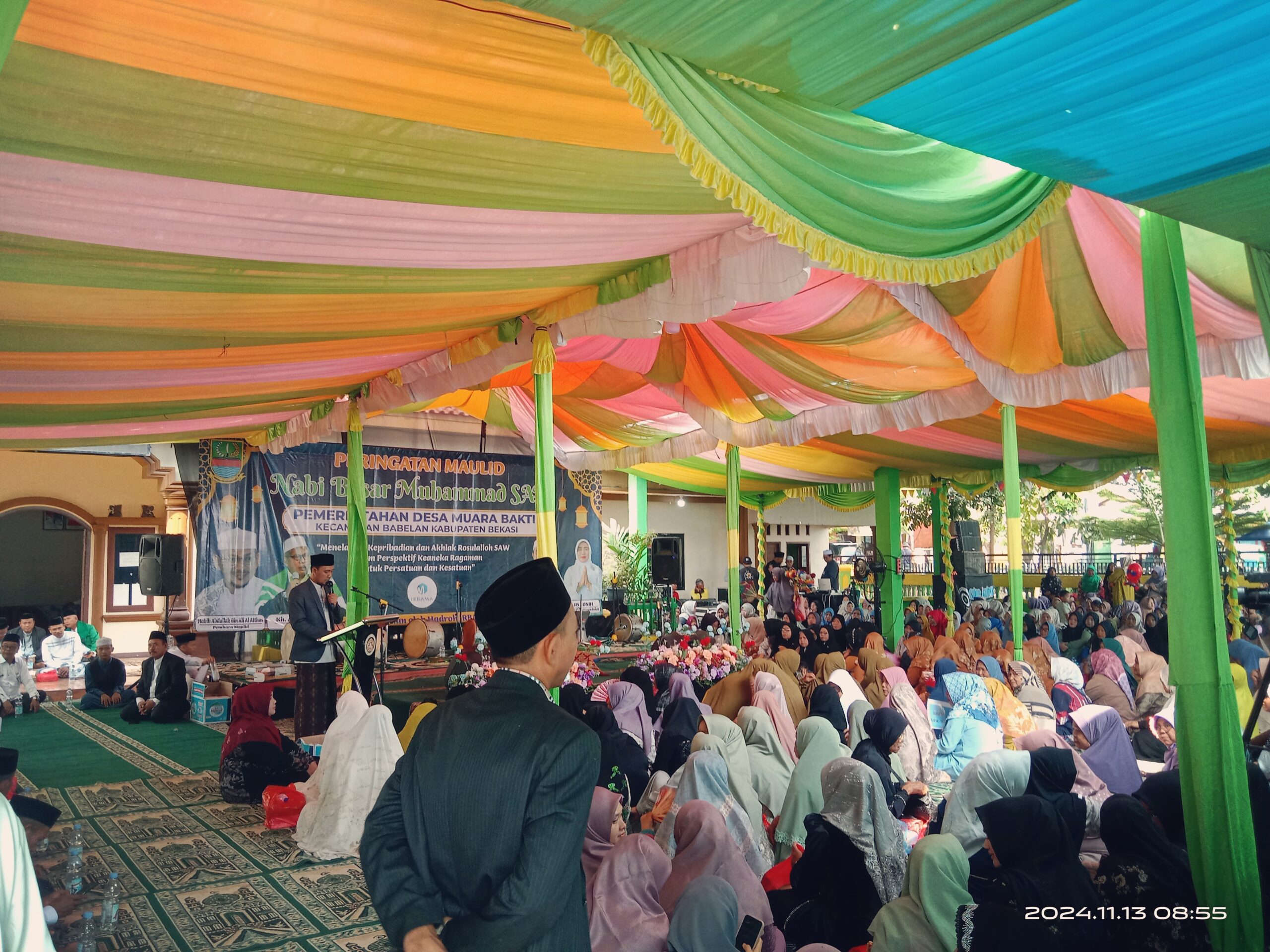 MEDIABERITAPANTAU, BABELAN ~ Pemerintah Desa Muara Bakti memperingati Maulid Nabi Besar Muhammad SAW 1446 H / 2024 M, di Halaman Kantor Desa Muara Bakti, Kecamatan Babelan, Kabupaten Bekasi, Jabar, pada Rabu (13/11/2024) pagi.