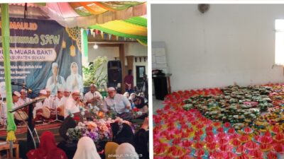 Seperti pada umumnya, kegiatan Maulid Nabi Muhammad SAW 1446 H /2024 M yang dihadiri oleh ribuan masyarakat Desa Muara Bakti Kecamatan Babelan dan Desa Sukatenang Kecamatan Sukawangi, diawali dengan pembacaan Ayat Suci Al-Qur’an, dan dilanjut dengan pembacaan Maulid Nabi Muhammad SAW, oleh Al Habib Abdulah Ali Bin Al Atos.