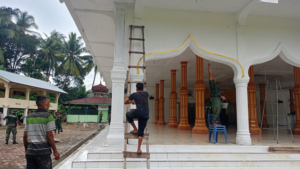 Media Berita Pantau Lhokseumawe –. Masih dalam rangkaian TNI Manunggal Membangun Desa (TMMD) ke-122 Kodim 0103/Aceh Utara, Satuan Tugas (Satgas) bersama Warga mengecat Masjid An Nakhdhoh, di Gampong Paloh Punti, Kecamatan Muara Satu, Kota Lhokseumawe, Selasa (08/10/2024).