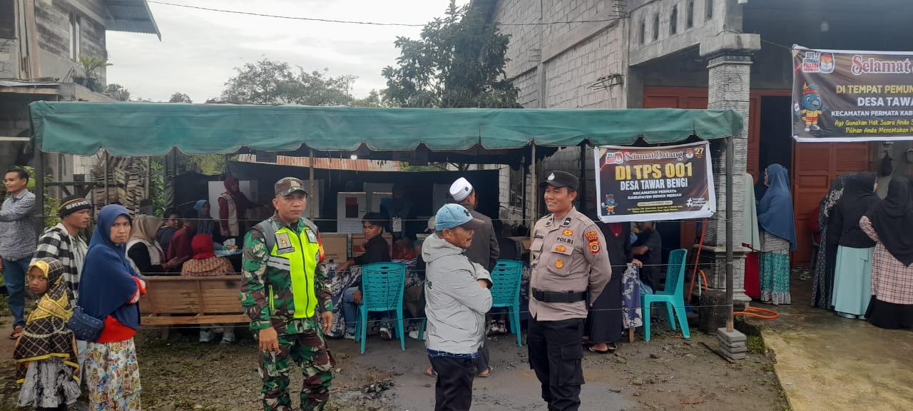 Mediaberitapantau.Online|Redelong–: Babinsa Koramil 05/Permata Kodim 0119/BM Serda Disman Purba melaksanakan pengamanan pemungutan suara yang akan memilih Bupati dan Wakil Bupati Bener Meriah, maupun Gubernur dan Wakil Gubernur Aceh bertempat di Desa Tawar Bengi, Kecamatan Permata, Kabupaten Bener Meriah, Rabu (27/11/2024).