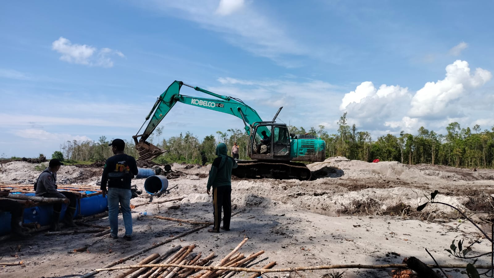 “ Dari penindakan hari ini, Alhamdulillah kami berhasil mengamankan satu unit alat berat Excavator Merk Kobelco, satu buah mesin Dongfeng, satu buah mesin pompa air dan beberapa buah selang dan karpet. Namun sayangnya kami tidak menemukan pekerjanya, yang sepertinya barusan kabur kearah hutan karena mengetahui ada kedatangan petugas ” tambah AKBP Setiadi.