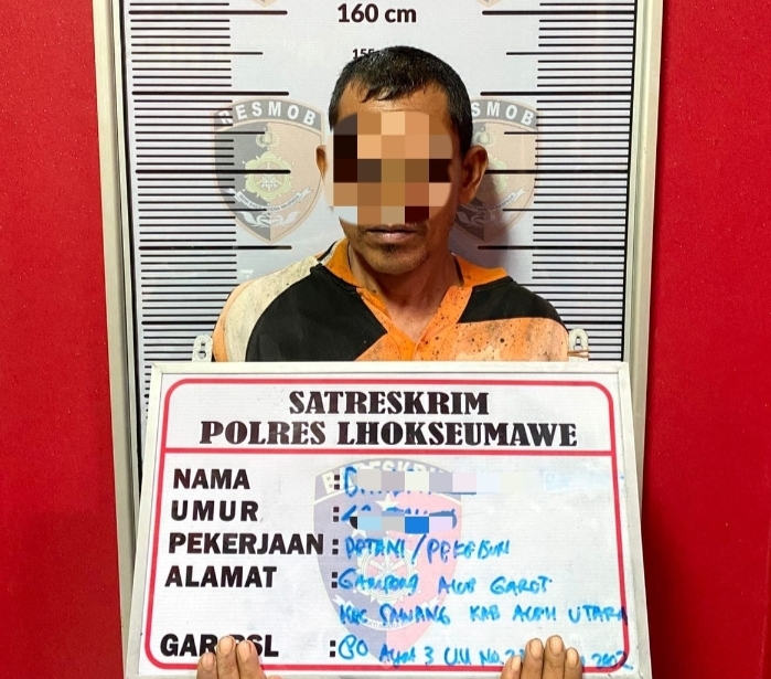 Kepada awak media, Kapolres Lhokseumawe AKBP Henki Ismanto, S.I.K melalui Kasat Reskrim IPTU Yudha Prasatya, S.H mengatakan, Penangkapan dilakukan di sebuah gubuk di tengah kebun karet Dusun Alue Garot, Gampong Teupin Reusep, Kecamatan Sawang, Kabupaten Aceh Utara.