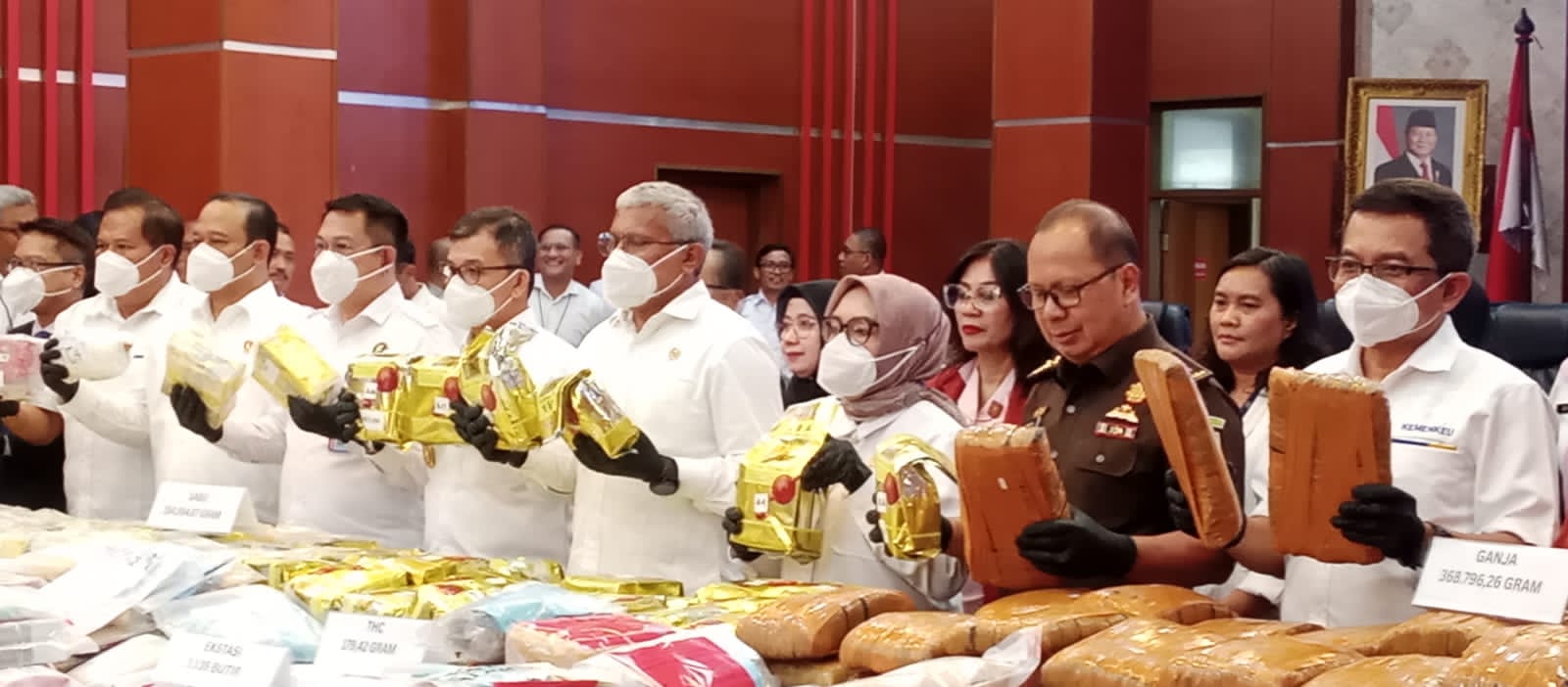 Dari pengungkapan tersebut, disita barang bukti narkotika dengan total berat mencapai 683.885,79 gram, yang terdiri dari: Sabu 308.631,73 gram; Ganja 372.265,9 gram; Ekstasi 6.640 butir atau setara 2.663,21 gram; THC 179,42 gram; Hashish 104,04 gram; dan Amfetamine 41,49 gram.