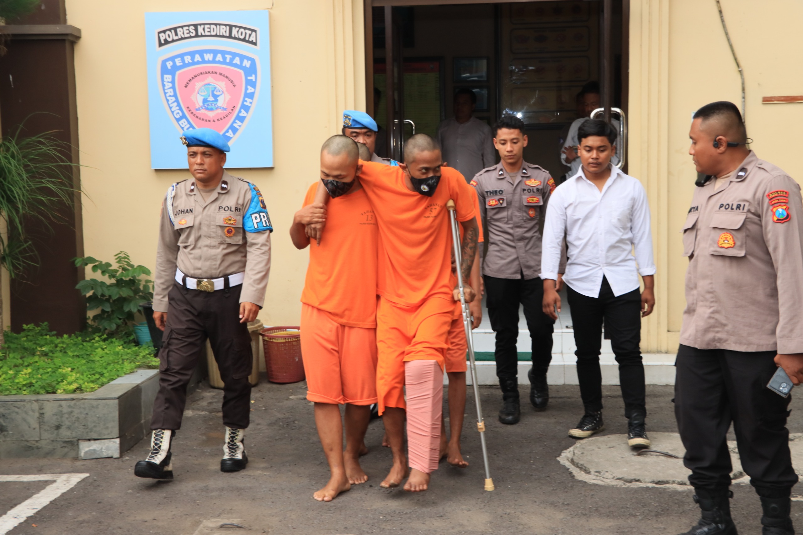 Kapolres Kediri Kota AKBP Bramastyo Priaji mengatakan bahwa saat hendak ditangkap, seorang dari gerombolan tersebut rupanya berusaha melawan petugas ( Tim Opsnal Resmob Satreskrim Polres Kediri Kota – Red ) hingga pada akhirnya terpaksa dilumpuhkan. Lebih lanjut keempatnya juga merupakan seorang residivis.
