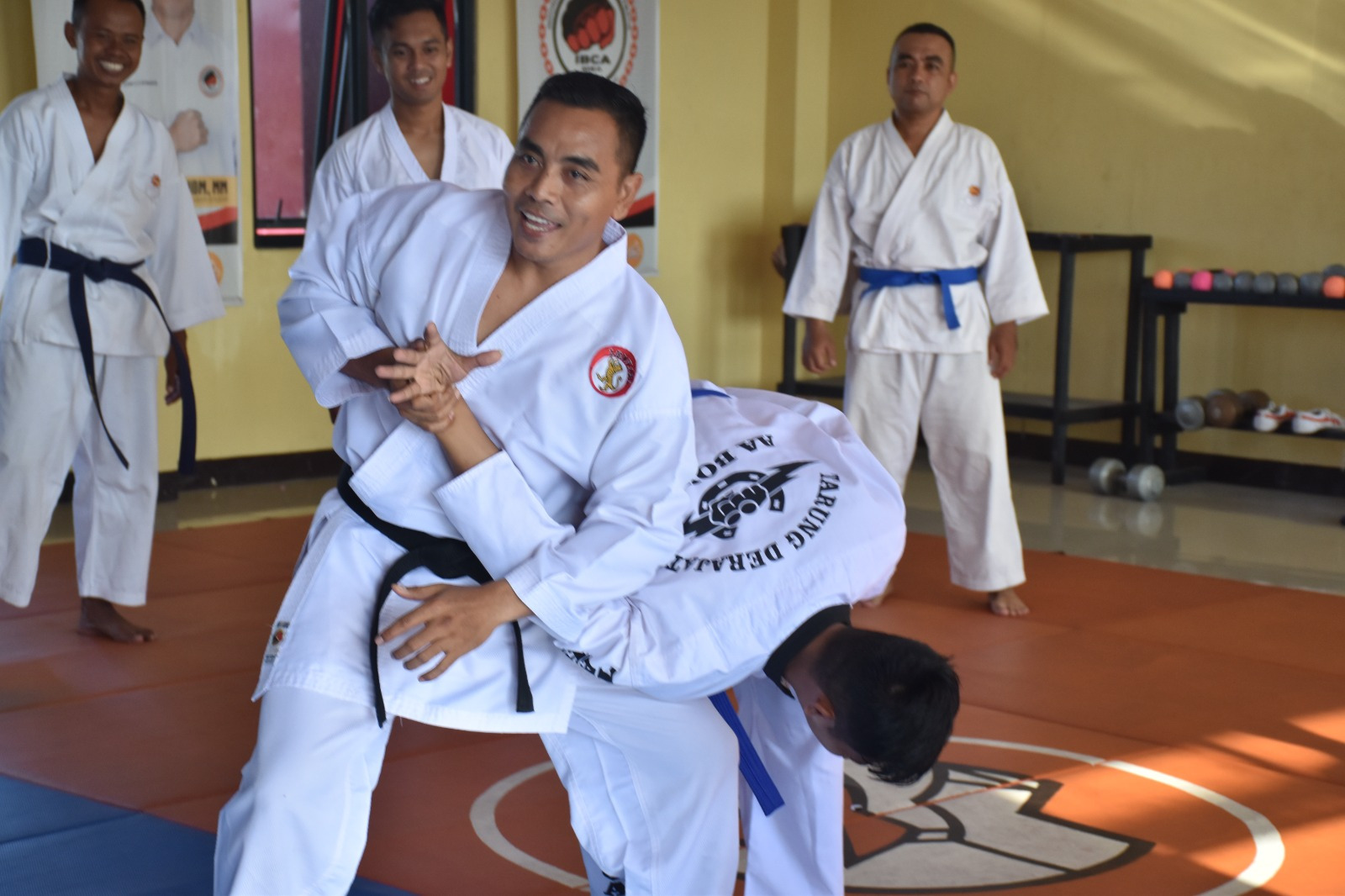 Hari ini kegiatan latihan beladiri Polri kami isi dengan materi pukulan, bantingan serta kuncian dan tujuannya adalah untuk melawan atau mengatasi pelaku tindak kejahatan dengan tangan kosong dan ini sifatnya hanya melumpuhkan saja tidak sampai mencelakai si pelaku”, ucap Bripka I Putu Ariawan.